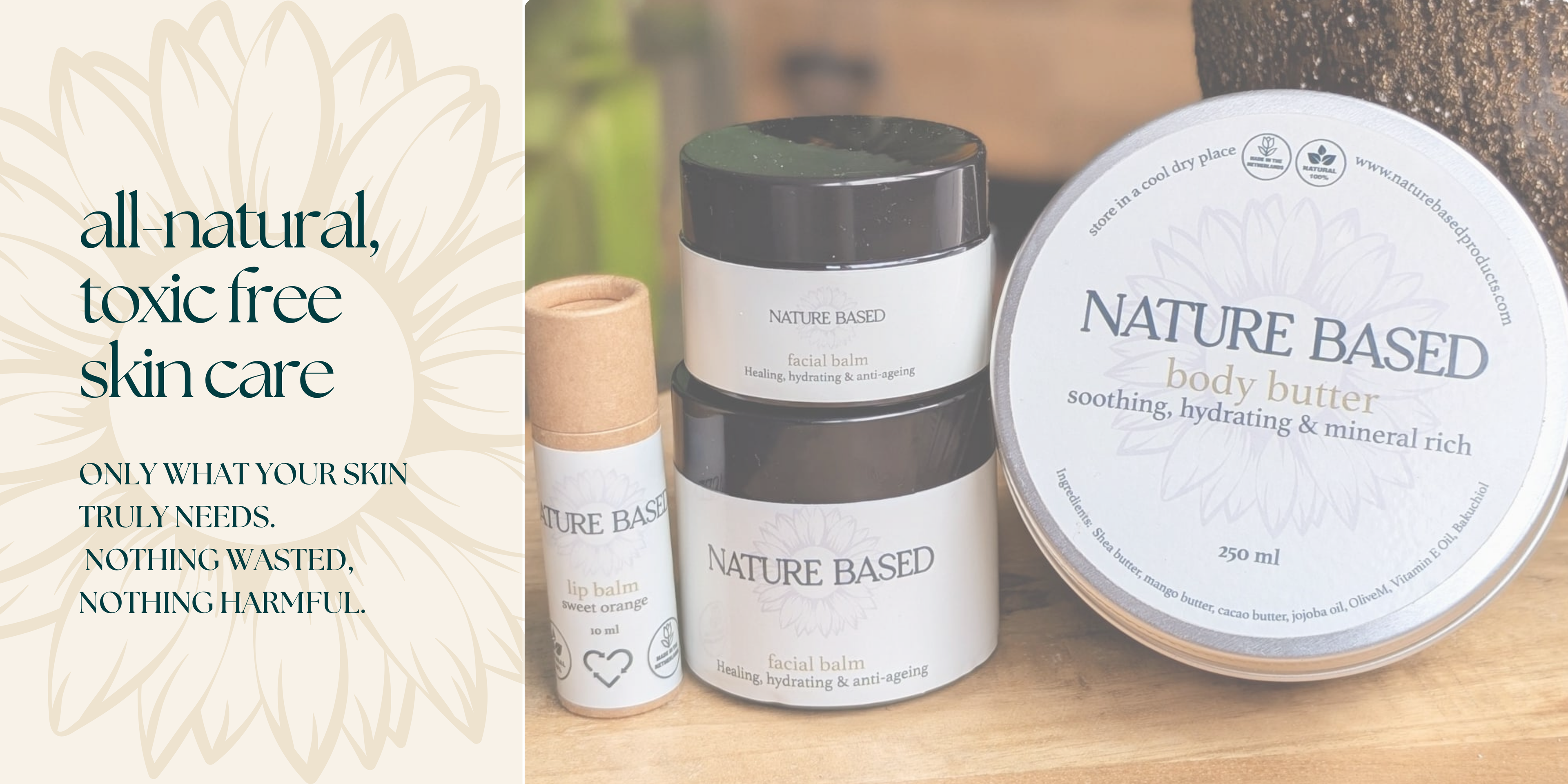 At Nature Based Products, we harness the power of nature. We take pride in using all-natural organic ingredients, with no toxins ever entering our recipes.